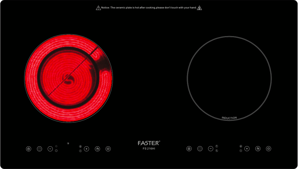 - Bếp điện từ 2 vùng nấu :1 Vùng nấu điện và 1 vùng nấu từ