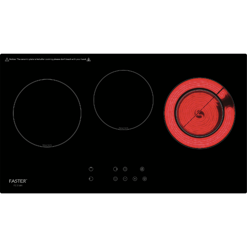- Bếp điện từ 3 vùng nấu :1 Vùng nấu điện và 2 vùng nấu từ